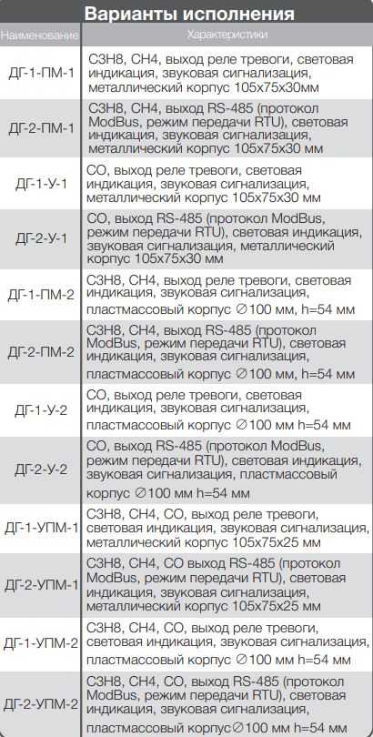 Шлейф передачи извещения “Тревога” (ДГ-1) или RS-485 (ДГ-2) Время срабатывания аварийной сигнализации после изменения содержания определяемого компонента на входе сигнализатора по каналу CH4 и C3H8 – не более 10 секунд, по каналу CO – не более 50 секунд. Среднее время наработки на отказ сигнализаторов в дежурном режиме, не менее 15 000 часо